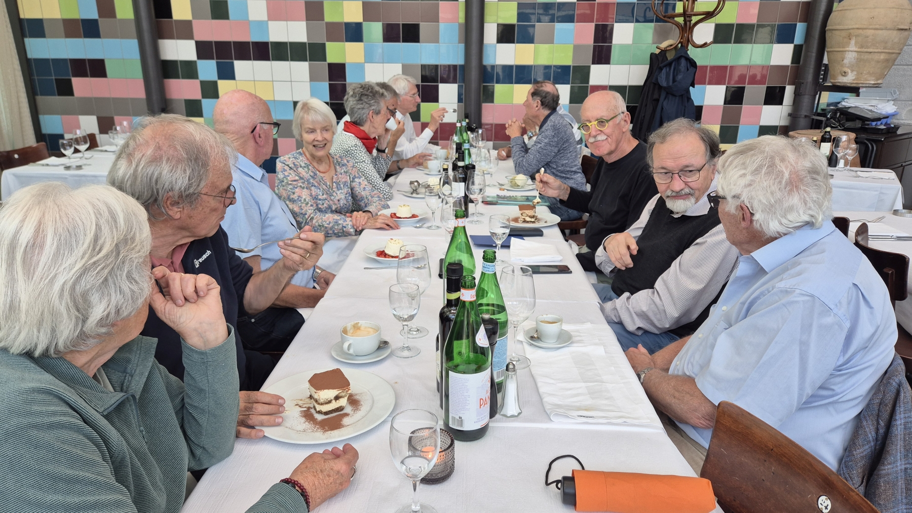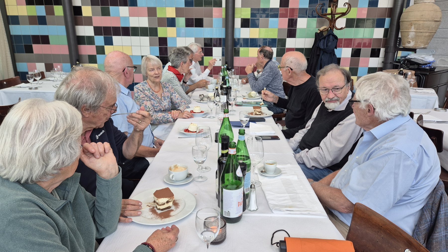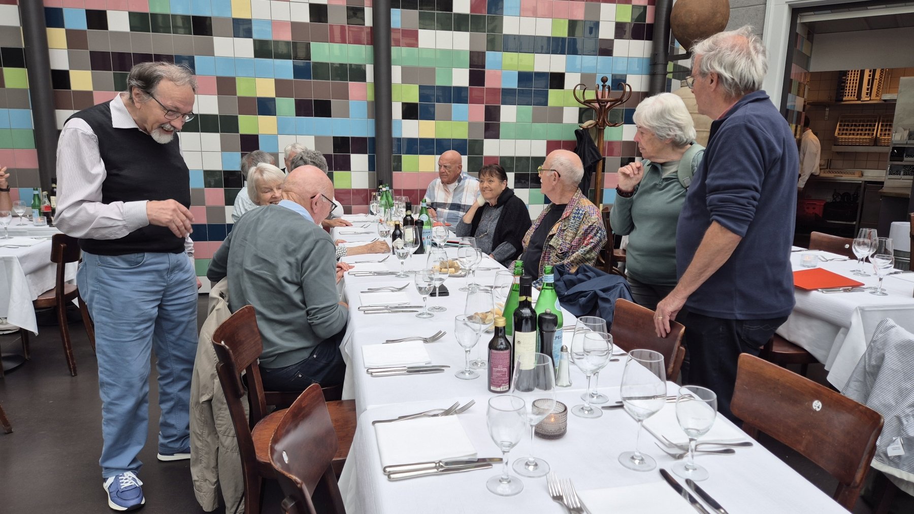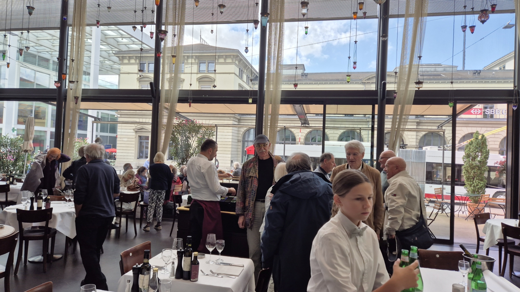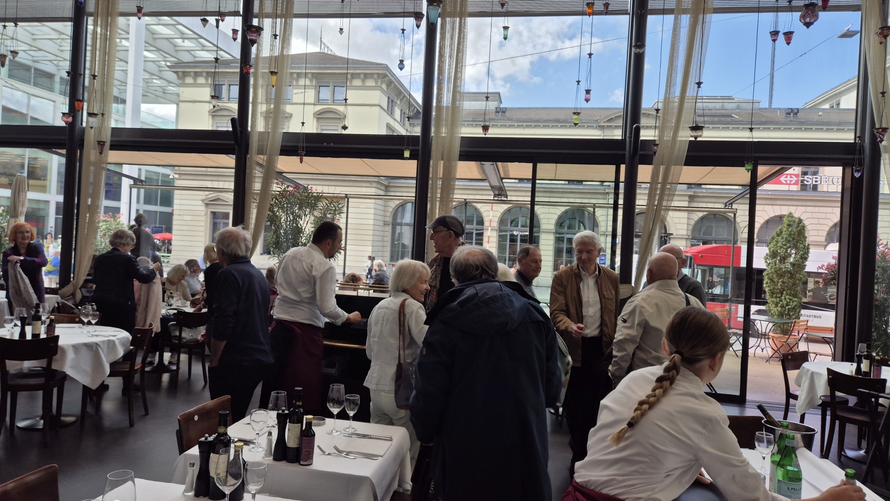 gehen wir uns ins Restaurant National. So langsam trudeln alle 13 Teilnehmer ein