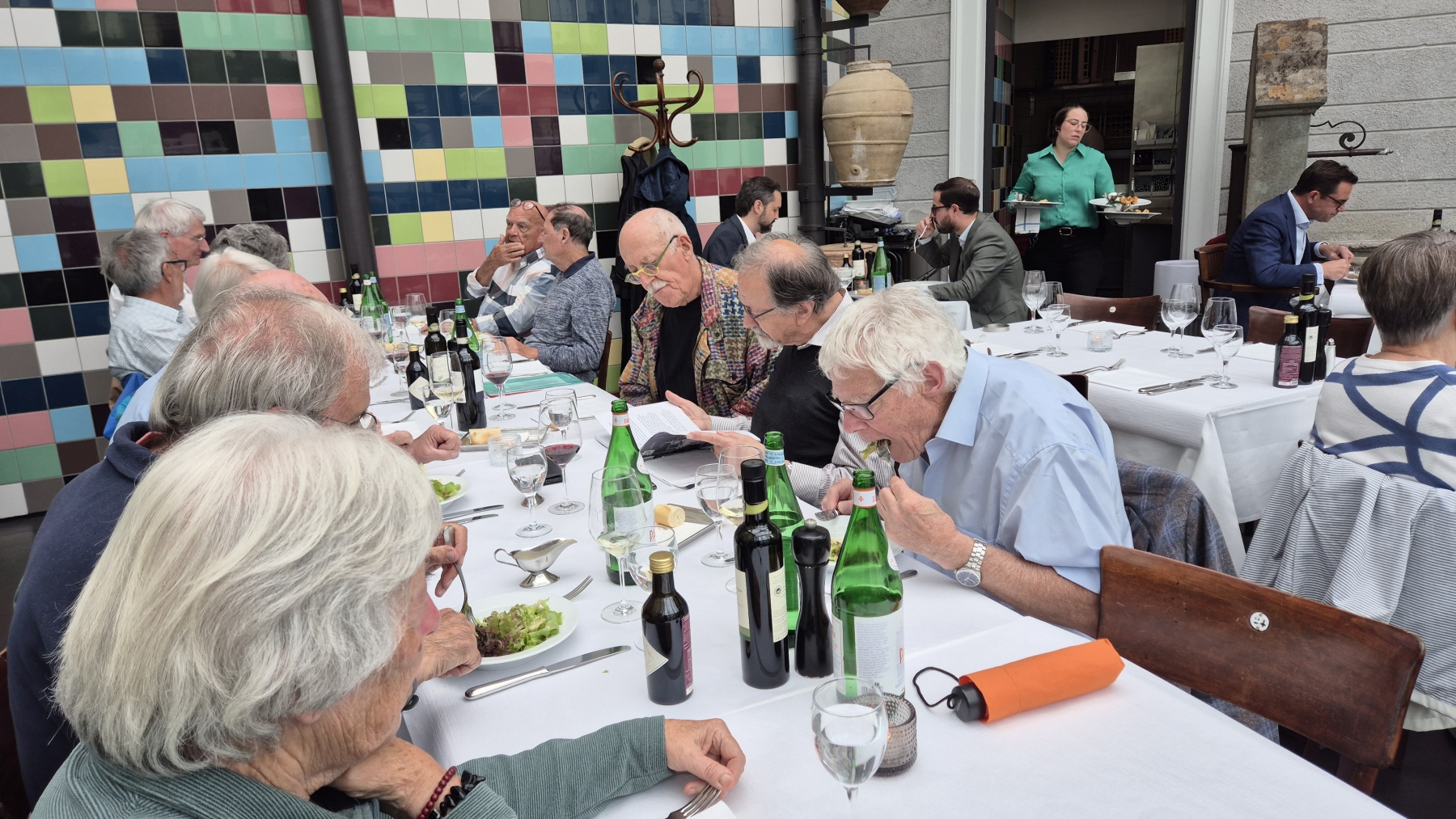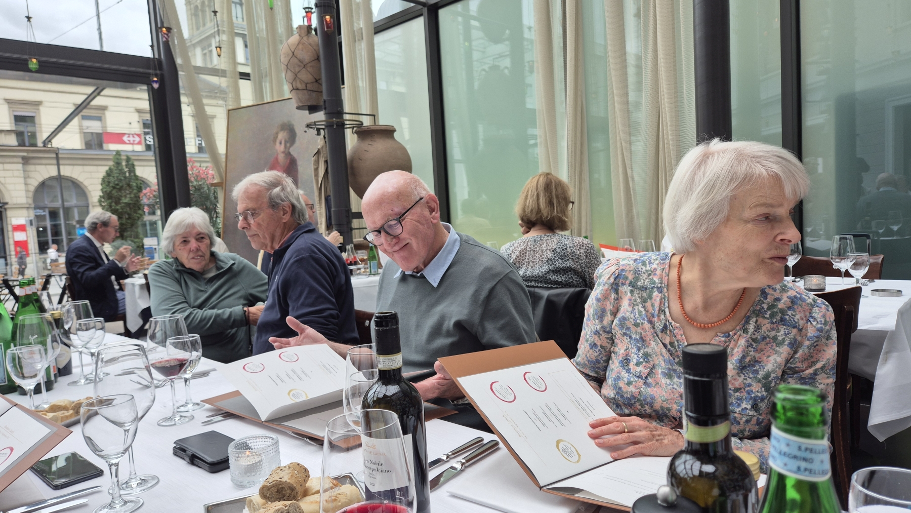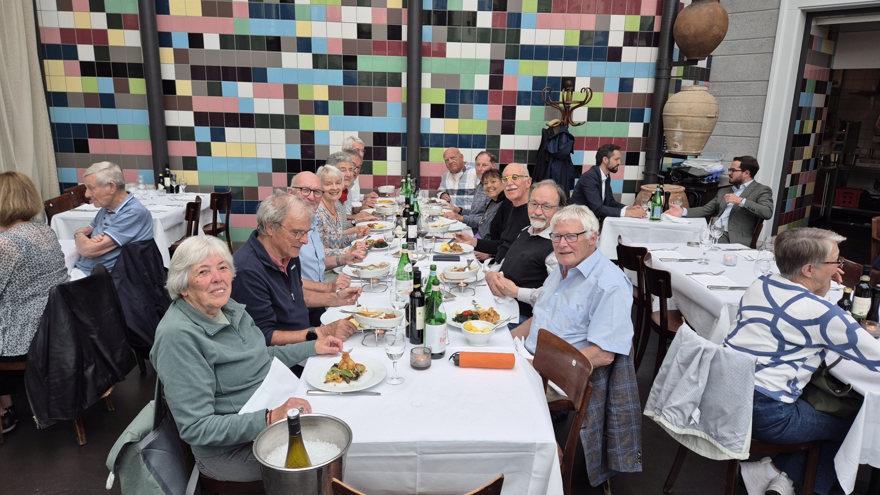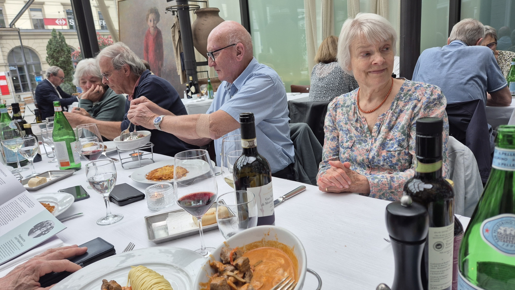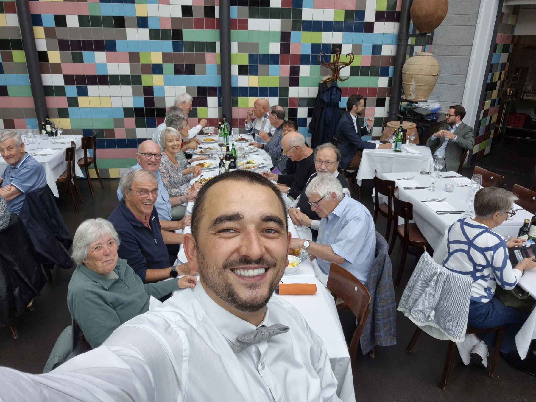 gehen wir uns ins Restaurant National. So langsam trudeln alle 13 Teilnehmer ein