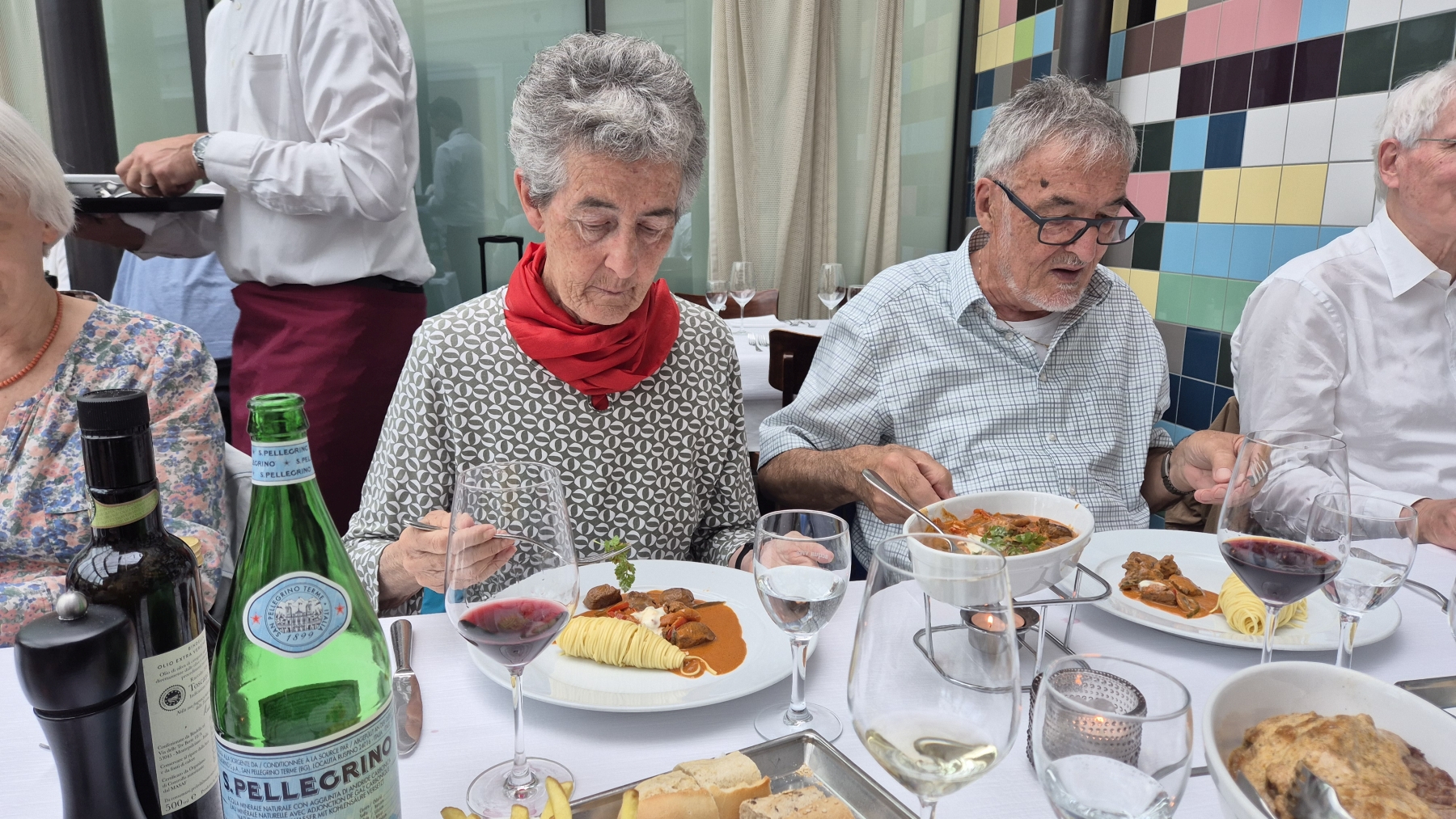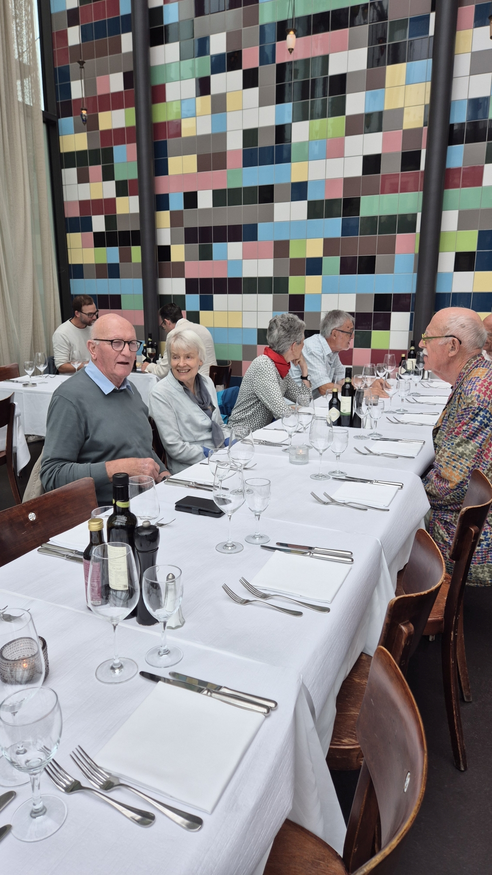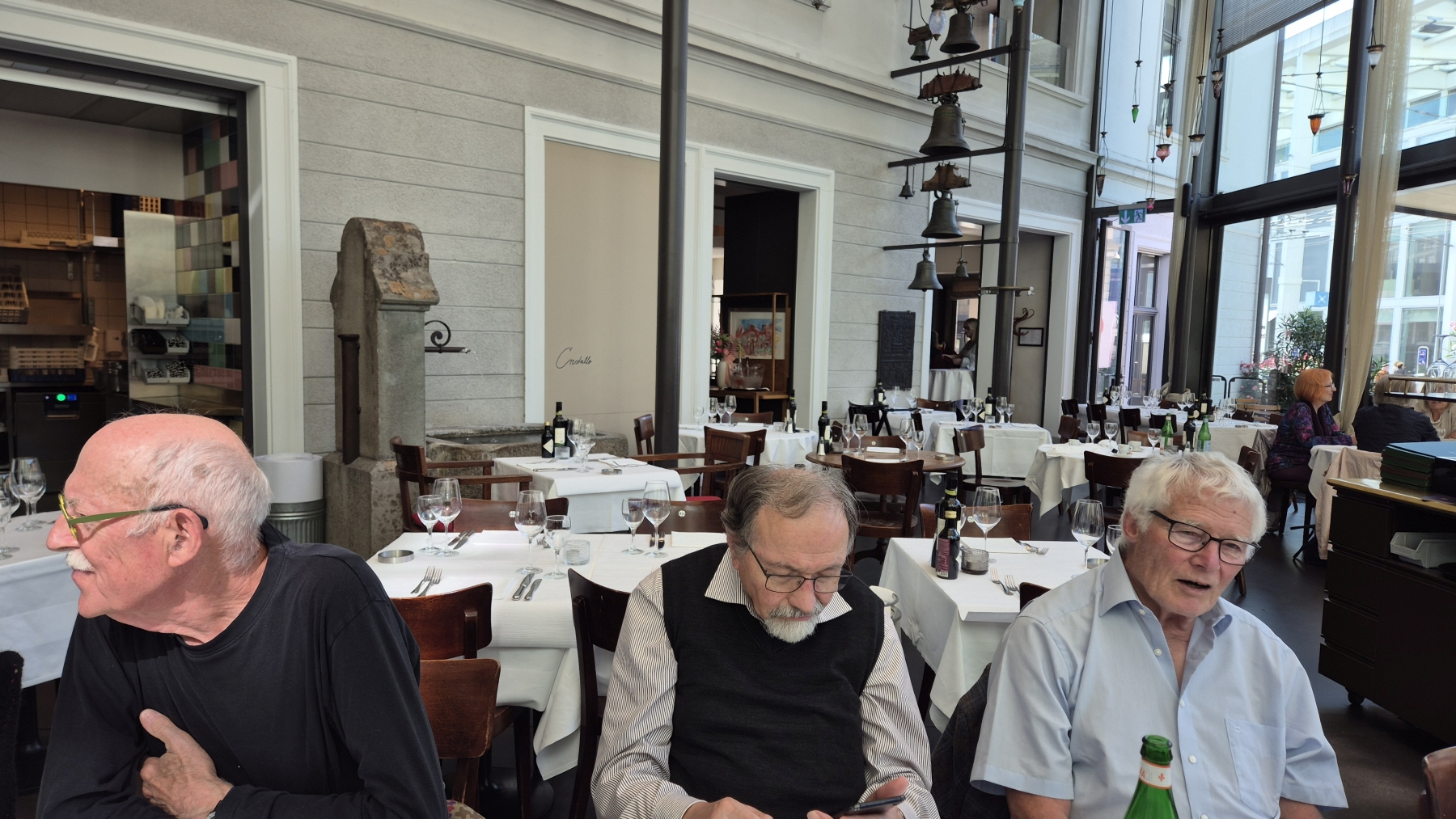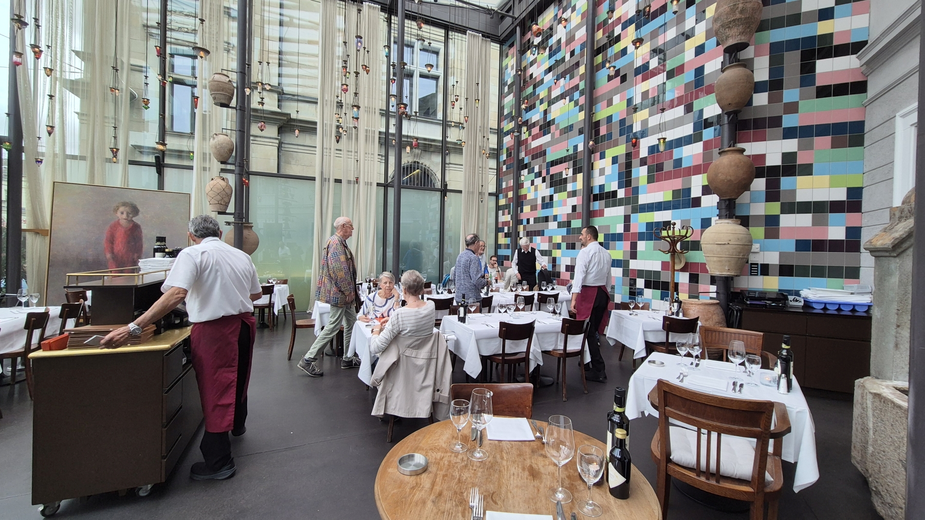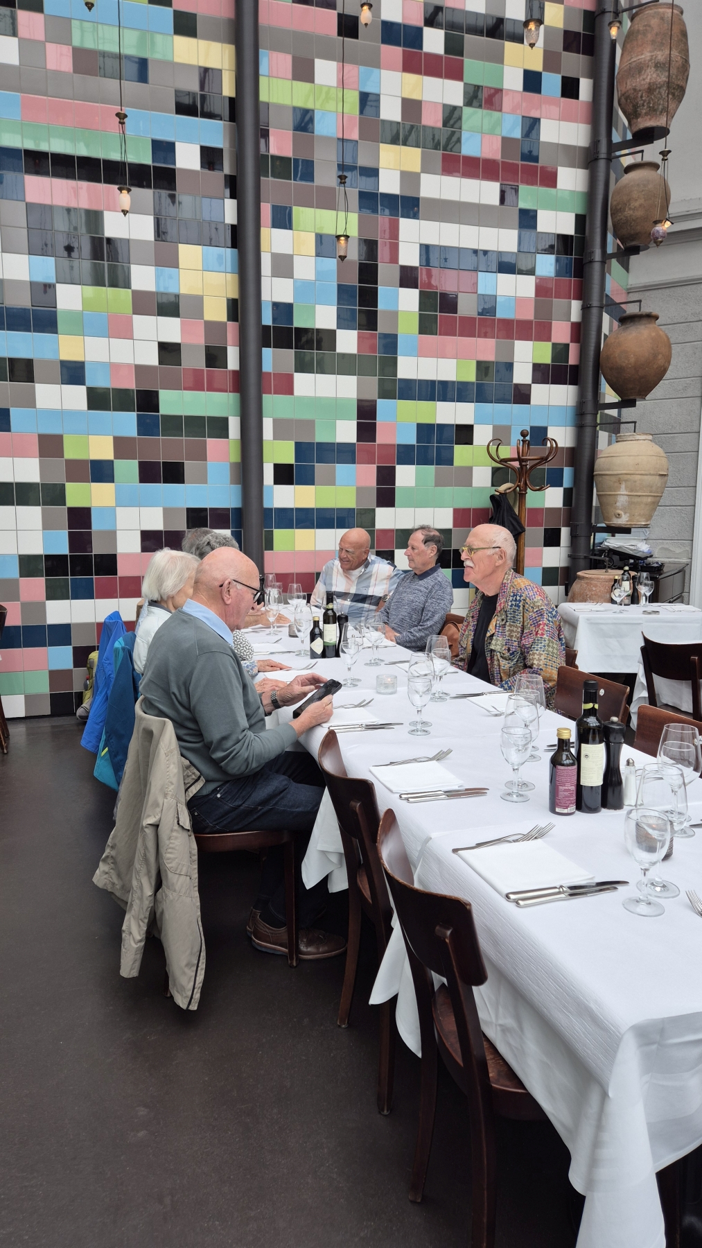 gehen wir uns ins Restaurant National. So langsam trudeln alle 13 Teilnehmer ein
